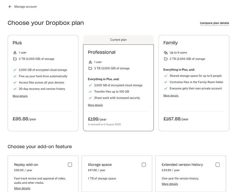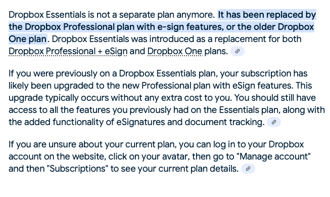 Hi ... I've notice that the Dropbox Essentials plan has now disappeared (UK based) and the Professional account has now gained the couple of the Essentials extras.... E signatures etc
