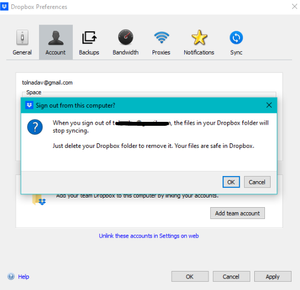 Once you click on the OK option, you'll be logged out from your Dropbox account and your Dropbox folder will be a local copy of the files you had stored in your Dropbox account.