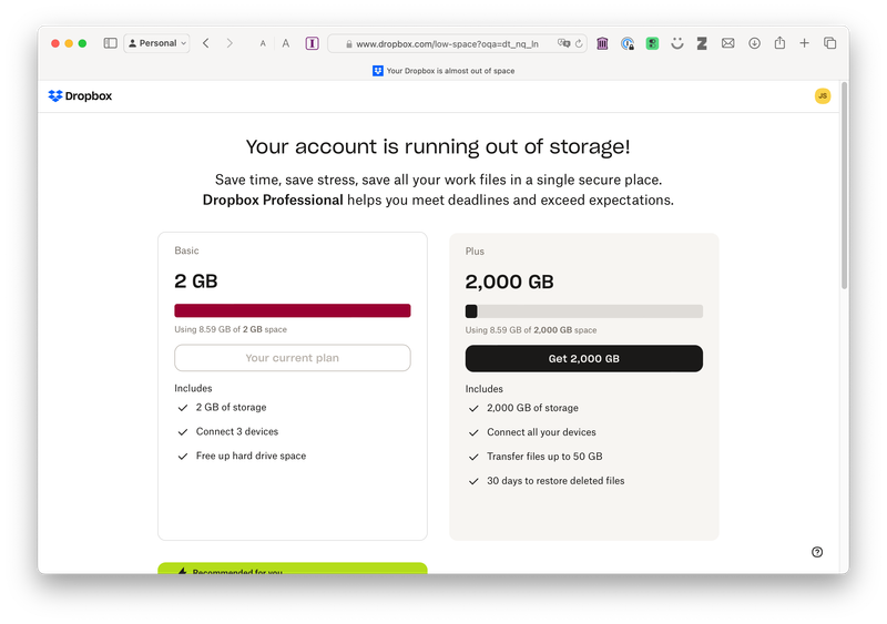 I am getting extremely tired of getting "You're running out of space!" notifications. I'm not running out of space. I have more than 1GB free. If these don't stop, I think I'll just move everything to iCloud Drive and delete Dropbox.