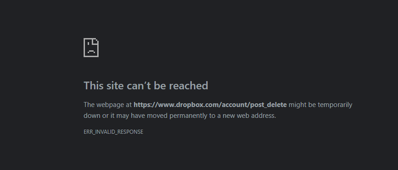 I am trying to delete my Dropbox account that was initially registered using my AppleID. When I try to delete my account on the iPhone app, it gives me an error saying "something went wrong, an unknown error occurred". This makes it impossible to delete on iPhone app.