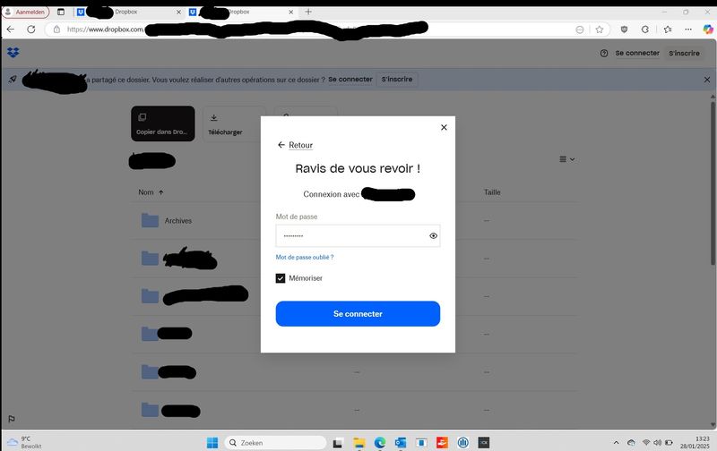 We are trying to recreate a dropbox account with the same email adress. Dropbox tells me that they are happy to see me back, we put the password but then nothing happens. Nothing is opening, we stay on the same screen where we have to put the password.