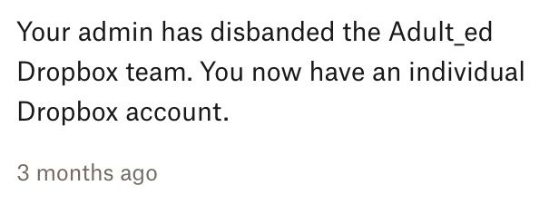 Personal files not available since Dropbox team was 'disbanded'