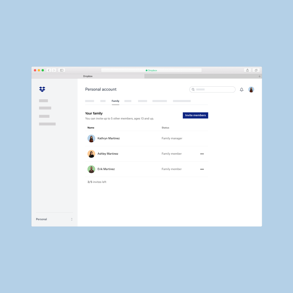 You asked for it, Jean-Marc, and the people supported it! Dropbox Family is Dropbox Plus, but for your whole family. There are some differences to the plan, with some extra new features and 2TB of shared storage for your family. When you share with members on your plan, it only counts towards your plan storage once, not for each time a document is shared. Now you can create a shared family space to share those important family docs with peace of mind. Your plan can include up to 6 members, whether they are in your household or living elsewhere, like college students or grandparents.