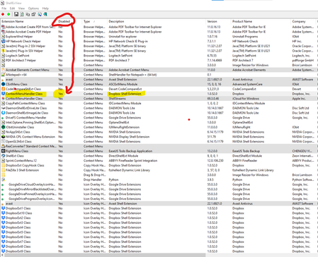 a. What could possibly have caused the “ContextMenuHandler Class” to be marked as “Disabled” in the first place.