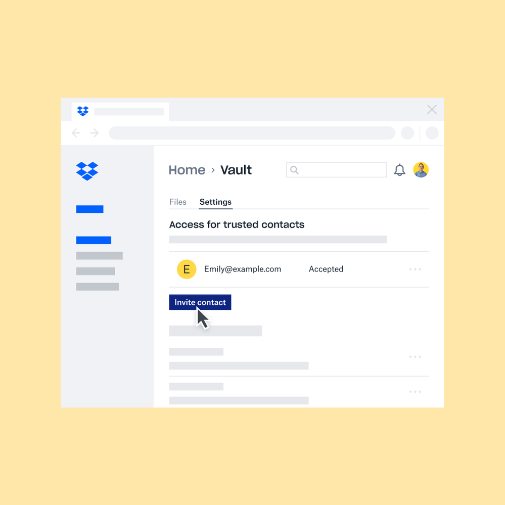 Whether it’s your passport, insurance details, or even legal documents, you want to make sure your most important files are safe and well organized, so you can find them when you need them. We have created Vault, with a PIN for secure access. Enjoy peace of mind knowing that you can designate trusted friends or family members who can access your files in an emergency. It’s like a virtual safe deposit box, just in case! This will be released generally soon, but for now it’s in Beta with select Dropbox users.
