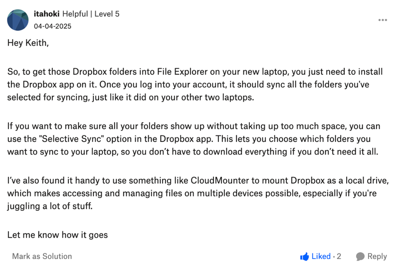 itahoki shared thoughtful advice and steady encouragement throughout April. Always positive and engaged, their contributions have made a real difference. Just have a look at this helpful post from the 4th of April: