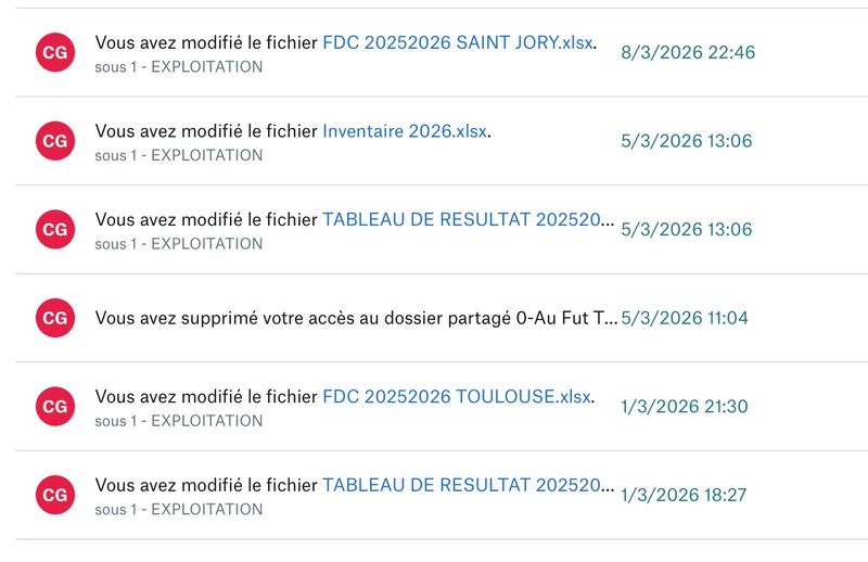 Selon la PJ, le 05/03/2026 à 11h04 j'aurais supprimé moi-même mon accès à un dossier partagé (qui ne l'est avec personne d'autre, première interrogation mais passons) nommé 0-Au Fut T...