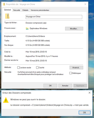 Dossiers téléchargés .zip vide