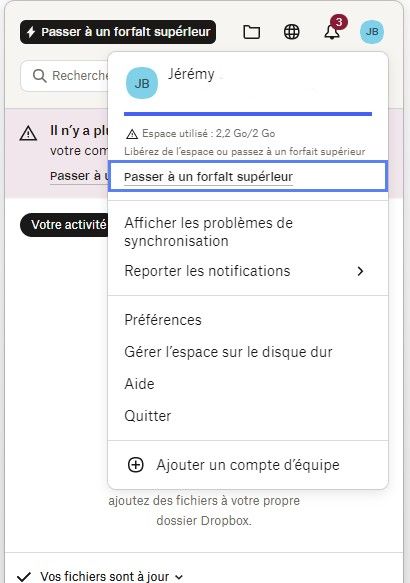 Aucun dossier dans ma Dropbox et toujours le message : vous n'avez plus d'espace disponible
