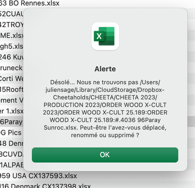 Je n'arrive pas à ouvrir certains fichiers excel dans la dropbox. Ils sont bien stocker en ligne. Ce message d'erreur m'apparait. Merci de me donner vos avis .
