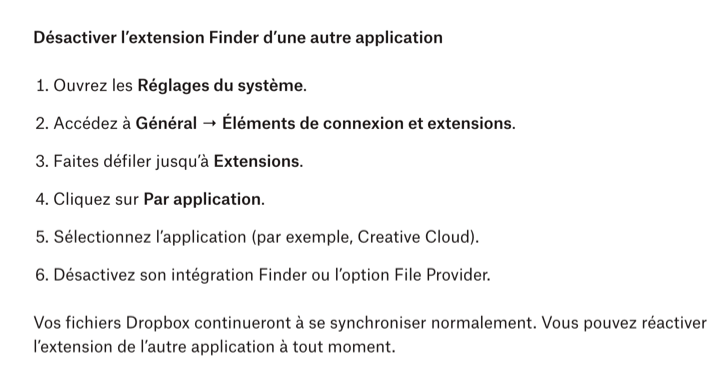 Mac os - icones de disponibilités n'apparaissent pas dans le dossier drop box