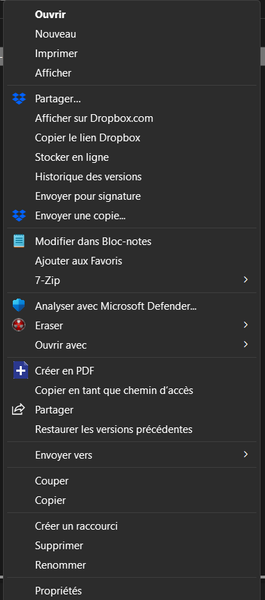 Il n'est malheureusement pas possible de personnaliser le menu contextuel de l'application de bureau Dropbox.