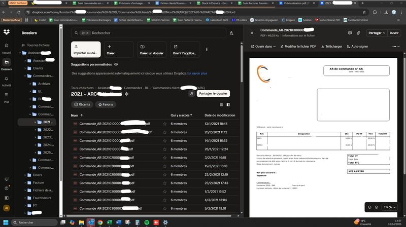 Tous nos documents sont sauvegardés sur Dropbox avec des synchronisations automatiques ultra-fréquentes. Sur mon ancien PC, je pouvais prévisualiser tous les documents (PDS, Excel, Word...) en cliquant dessus une fois (cf. screenshot ci-joint) mais aujourd'hui, cela ne fonctionne plus. Nous avons vu sur un post similaire que vous pouviez transmettre un code ou quelque chose du genre qui permette de débloquer ce souci.
