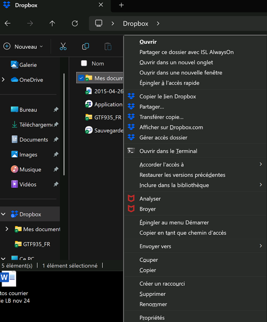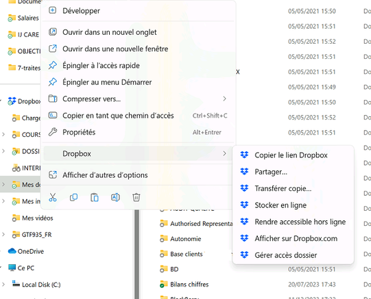 J'avais Dropbox installé sur l'ancien PC en windows 10, je pouvais voir TOUS les dossiers et ne synchroniser dans mon PC en local QUE les dossiers/fichiers utiles, qui se téléchargeaient à la demande.