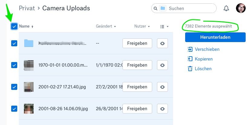 ich habe heute ca. 3000 Bilder von meinem iPhone in die Dropbox geladen und möchte sicher gehen, ob sie alle da sind, ohne sie einzeln anzusehen.