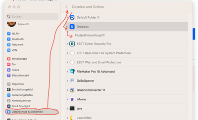 Läuft die Dropbox-App überhaupt?? Hab zwar noch einen iMac mit IntelCPU aber zumindest schon MacOS Ventura.