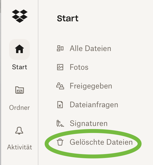 Sie befindet sich nun im "Dropbox"-Papierkorb"