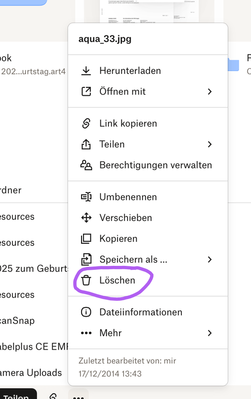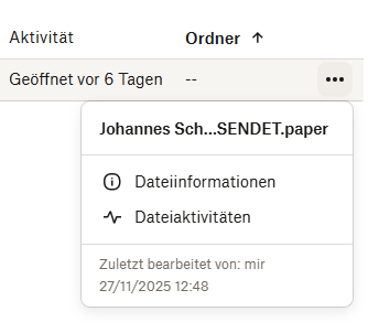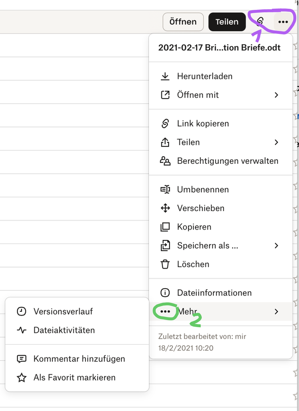 Genau, wenn ich auf die drei Punkte bei 1 klicke, kann ich nur "Dateinformation" oder "Dateiaktivität" auswählen.