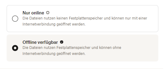 Hi, ich habe genau dasselbe Problem. Obwohl unter Synchronisierung "Offline verfügbar machen" ausgewählt wurde, sind meine Dateien nur mit einem grauen Wolkensymbol gekennzeichnet ("Verfügbar, wenn online"). Das macht keinen Sinn. Ich nutze ein MacBook Apple M4 Max.
