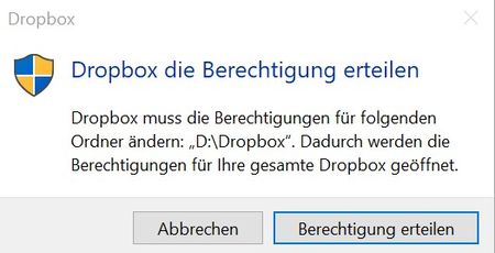 "Dropbox die Berechtigung erteilen" popup erscheint immer wieder