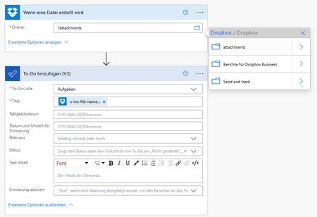 Dropbox Ordner wird in Power Automate Flow nicht angezeigt