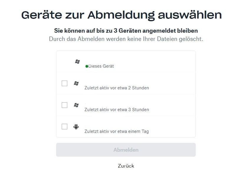 Sonderbar ist diesmal dass ich nach einer erneuten Anmeldung mitgeteilt bekomme dass ich zuviel Geräte für die Dropbox angemeldet hätte. Drei Mal auf dem selben PC RM1?!!
