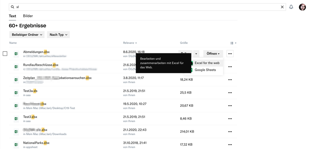 Wenn Sie aber rechts in der Zeile bei Öffnen "Excel for web" wählen, wird das Dokument in "Excel for web" geöffnet und nach meinem jetzigen Versuch auch bei Änderung abgespeichert…