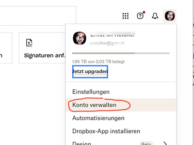 Dann rechts oben auf den Avatar-button klicken und "Konto verwalten" auswählen.