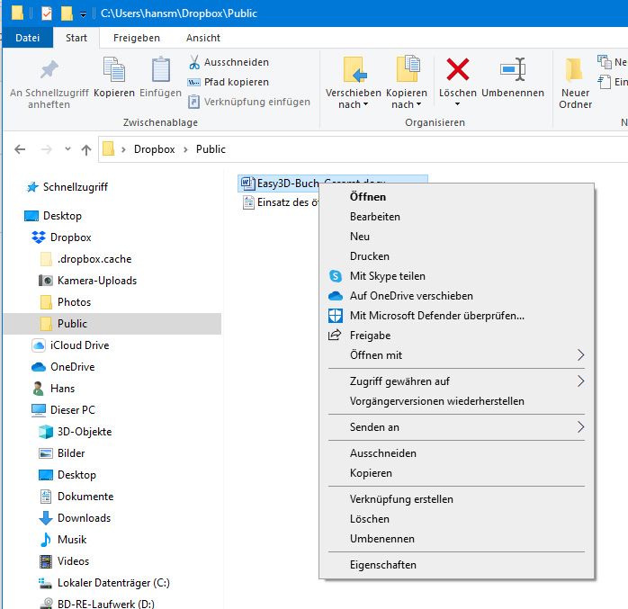 Jetzt verstehe ich nur nicht, wieso das im Windows-Explorer "C:\Users\hansm\Dropbox\Public\Datei" mit MausRechts nicht funktioniert. Danke jedenfalls.