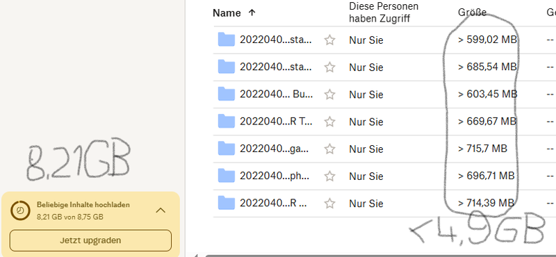 Stellt sich außerdem die Frage: was hindert Dropbox daran, statt halbwegs die wahre Größe von Ordnern anzuzeigen, nur etwa die Hälfte anzuzeigen und dann ein ">" davor zu schreiben?