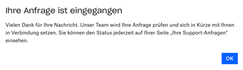 Sie sollten innerhalb von 24 Stunden eine Antwort von unserem Support erhalten.