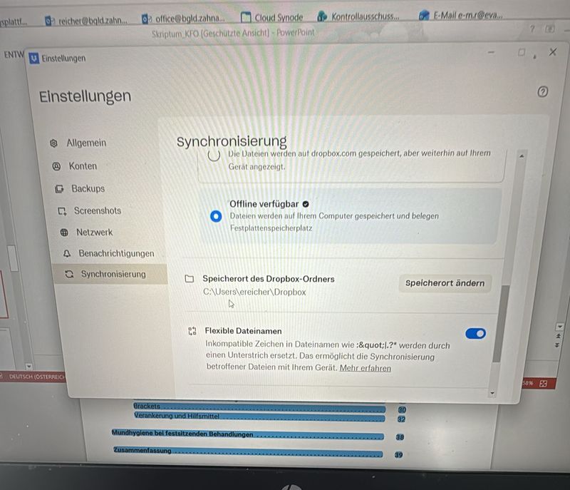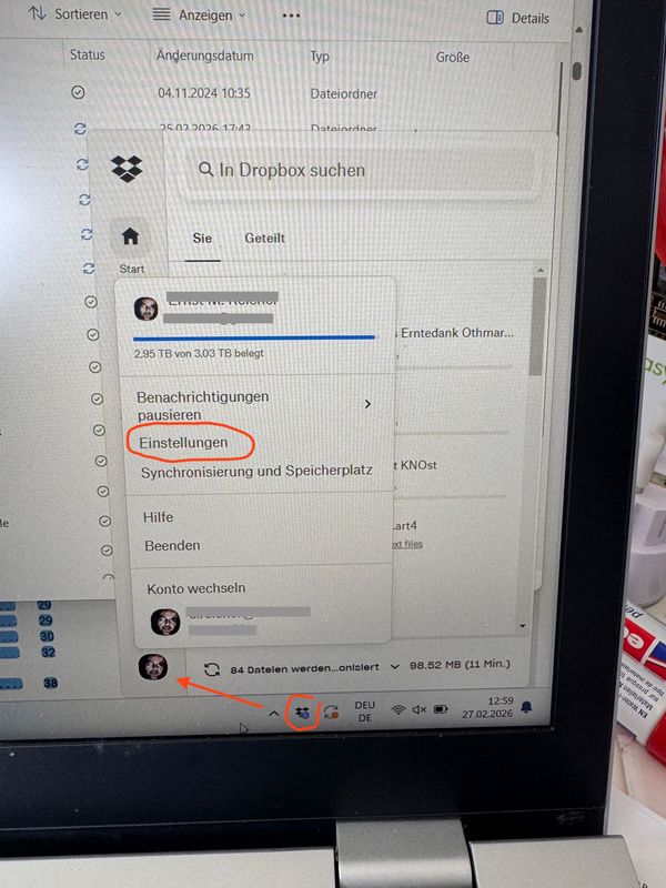 Windows 11 - rechts unten Dropbox-Symbol einmal anklicken (wenn sie es doppelt anklicken, kommen sie tatsächlich in den dateiexplorer) → links unten (nicht wie fälschlich von mir gesagt rechts oben) auf das avatar-Bild und dann auf die "einstellungen"…