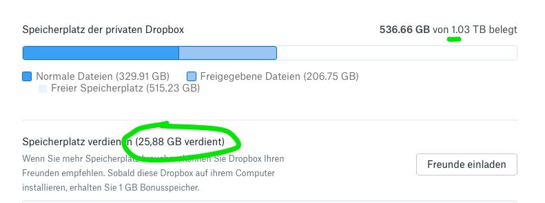 Was passiert mit verdientem Speicherplatz bei upgrade auf 1 TB