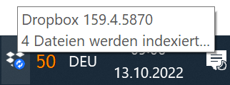 Mehrer Rechner-Neustarts als auch genügend Zeit ist verstrichen. Alle Dateien wurden erneut indexiert, aber der Client bleibt wieder an 7 Dateien hängen, die nicht indexiert werden. Das Tray-Icon zeigt als wieder dauerhaft den laufenden Indexierungs-Status über 7 Dateien.