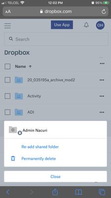 Además, si el propietario de una carpeta compartida o el administrador de un equipo Business han dejado de compartir esa carpeta contigo deberás solicitarle que te vuelva a dar acceso a la información.