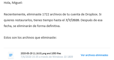 Si no consigues recuperar tus archivos con la información que te he facilitado, te recomiendo contactar con el equipo de asistencia de Dropbox para que puedan investigarlo.