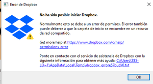 Buenas noches, Tengo un Laptop con Windows 10 con la aplicación de Dropbox instalada. De repente el Dropbox de mo Laptop dejo de sincronizarse. Dando el siguiente error: No acabao de en...