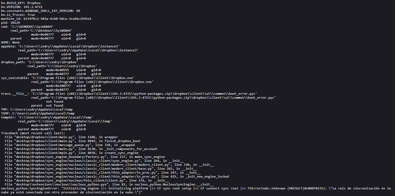 Llevo dos días que al iniciar el PC Dropbox no se inicia y me da errores diferentes.