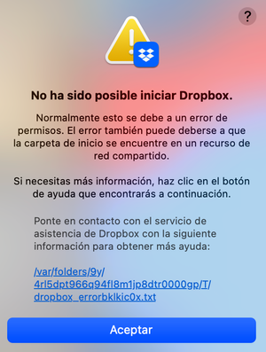 Error de arranque de aplicación Dropbox en MacBook air M1