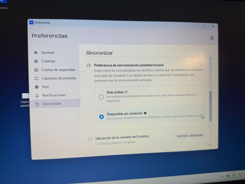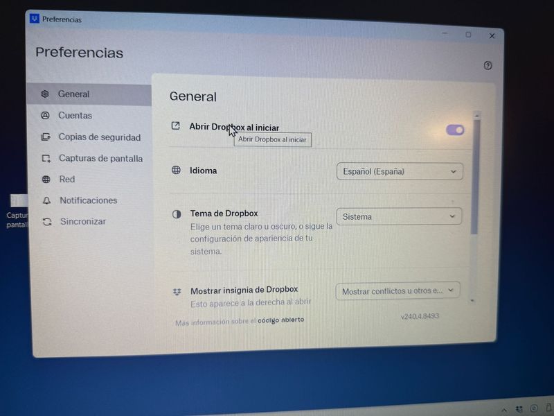 - Haz clic en el icono de Dropbox en la bandeja del sistema.