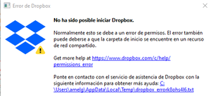 No ha sido posible iniciar DROPBOX. Normalmente esto se debe a un error de permisos....alguien me ay