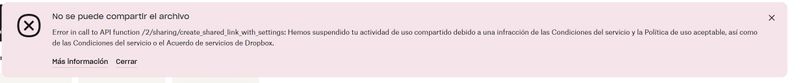 Me dedico al diseño web, y no sé que debió interpretar el sistema para bloquearme un derecho tan básico como es el compartir mis archivos.