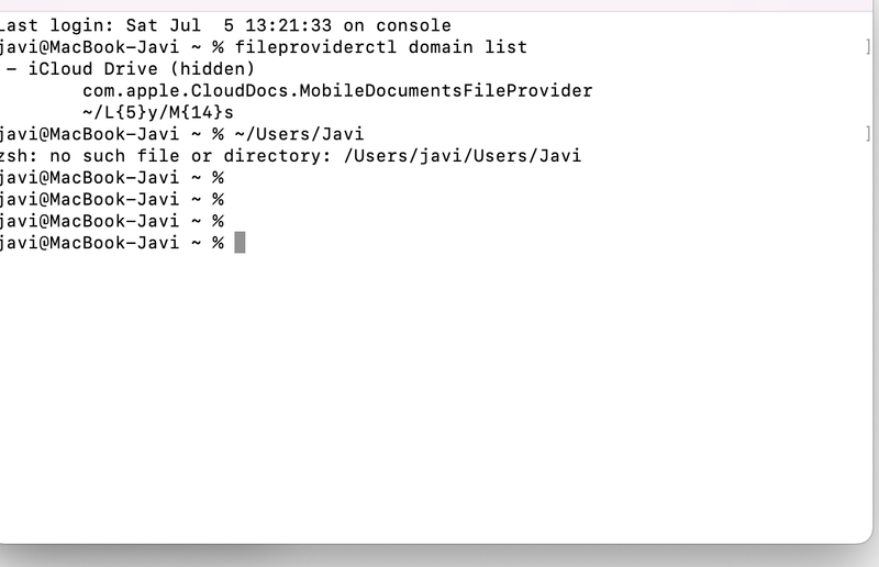 - Escribe fileproviderctl domain list.
