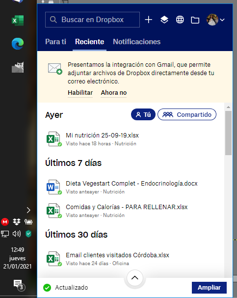 En los archivos aparece la cruz en rojo y, después, la marca en verde como si se hubiese sincro, pero es mentira. Aentras en la Dropbox, a través del navegador, y no aparecen los nuevos archivos ni se han de los modificados.