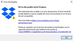 Actualmente cuento con inconveniente para iniciar mi Dropbox, me sale el inconveniente de " No ha sido posible iniciar Dropbox. Normalmente esto se debe a un error de permisos.