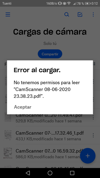 problemas para cargar desde camscanner