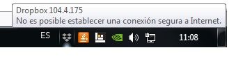 Posteriormente, al salir y volver a iniciar dropbox sale "tu ordenador no está conectado a la red, comprueba tu configuración de red"