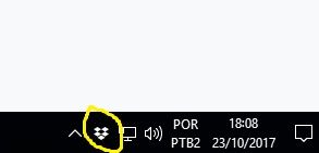 Olá Senhores(as), meu dropbox não aparece mais no PC o circulo azul de sincronizando e o verde de sincroniozado, está em branco conforme imagem, já desinstalei e reinstalei, ele só diz estar atualiza...