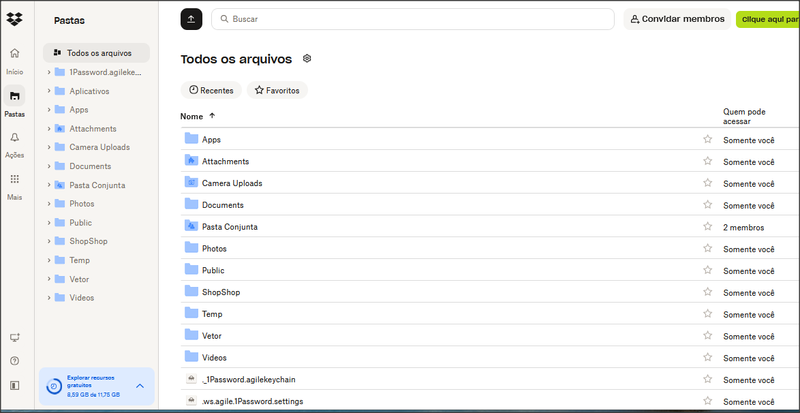 Desculpe, mas você não viu a última captura de tela que enviei. Essa última foi feita no computador, usando o navegador Firefox. Como ela foi feita mostrando somente o painel lateral, envio outra captura de tela com a janela inteira do DropBox, também feita no Firefox.