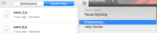 - As contas sincronizadas são as mesmas? Clique no ícone do aplicativo na barra de navegação e vá em preferências: